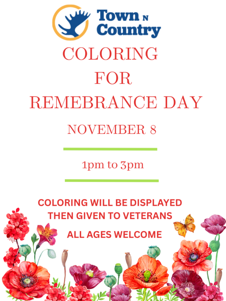 Bring the kids to centre court to color some pictures for Veterans