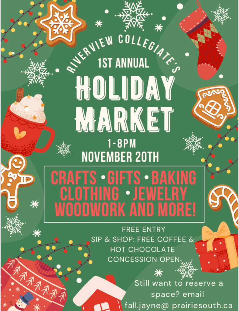 Come shop at our Holiday Market. Including crafts, woodworking, clothes, baking, dog treats and more. Admission is free. There will be free coffee and hot chocolate so you can sip and shop.