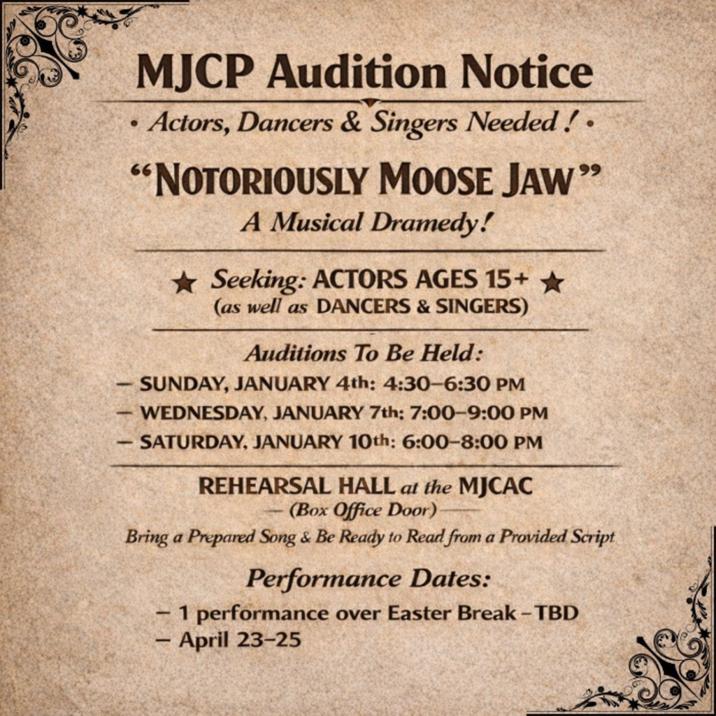 Moose Jaw Community Players Audition Notice - Notoriously Moose Jaw: The 2023 sold out show (with a little something new!)