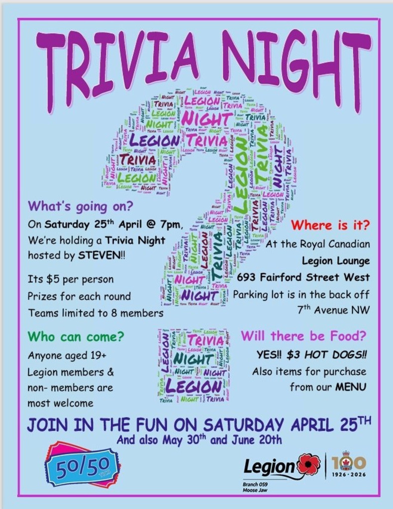 On Saturday 25th April @ 7pm, We’re holding a Trivia Night hosted by STEVEN!!